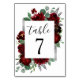 Red & Silver Country Burgundy Rose Winter Wedding Table Number