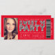 Ticket sweet 16 invitation with silver Hollywood marquis lights Sweet 16 Party with bar code and ticket style layout. This beautiful red and silver Sweet sixteen party invitation is easily customised for your event by simply adding your details. You can change the background colour on the front and back.