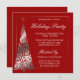 Red Silver Swirl Christmas Tree Holiday Party Invitation