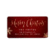 Personalized Christmas return address labels feature faux gold foil handwritten calligraphy "merry Christmas" script and snowflakes on red textured background, simple, modern and elegant.