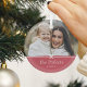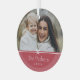 Sweet and simple Christmas photo ornament features a minimalist layout, with your family name and the year in clean, classic serif typeface on a festive red background. A petite bow beneath your photo completes the design.