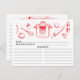 Rustic hand sketched kitchen tools recipe card featuring a rolling pin, pot, pepper mill & whisk with scattered vegetables in red. Flip the recipe card over for space for directions.