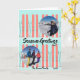 Red skis with snow holiday card. Perfect for Christmas for any ski lover.