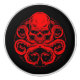 This knob has a black background with a bright red design of a skull with octopus tentacles coming out of it.