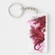Fantasy art of a ruby red dragon rising in the cloudy red sky. By Paxdomino