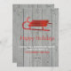 Rustic look flat style Christmas greeting card done in a weathered wood fence look, with a red foil looking sled, on the top of the card. Red foil look graphic text reading Happy Holidays, decorates the bottom half of the card, along with red and white custom text ready to personalise with your companies name. A logo area is available, at the bottom of the card, to replace with your business' logo, if not needed just delete logo field.