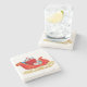 The coasters are gorgeous, a quality feel and heavy weight. They look like a precious archeological find. A rustic stone juxtaposed with a modern floral black and white print. I like the way the print goes slightly imperfect on the cut stone edges giving them a kind-of natural beauty.