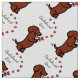 Red Smooth Dachshund Love Fabric. An adorable Red smooth haired Dachshund puppy is smiling with a tiny heart flower. Cheery and Whimsy and funny Dog Art created by Naomi Ochiai from Japan. Cute Dachshund cartoon design for dog lovers who love Doxie!!