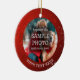 Red Snowflake Stars 2 Photo Custom Text Ceramic Ornament