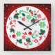 Red Snowflakes Background Simply Christmas Square Wall Clock