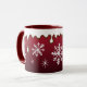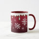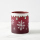Hot chocolate is dripping down this festive deep red snowflake mug. The designs are from original art.