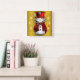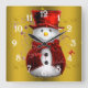 Red Snowmen on Gold Square Wall Clock