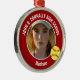 This cool customized high school softball player photo gift features white typography of your team and player name on a Christmas ornament with a ball on a red background. Personalize with your student's photograph and class year for a commemorative keepsake.
