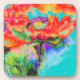 Red Solar Poppy - blue Coaster