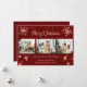 Cute red photo collage Merry Christmas and Happy New Year card featuring snowflakes and stars on the front and falling snow at the back. Easily personalise this elegant holiday card with your photos and text.