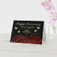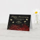 Elegant, stylish custom text Happy Anniversary card with red ink splash gold glitter black background, modern handwritten script typography, love arrow element and beautiful butterflies. A warm and sincere greeting card that is perfect for celebrating a special occasion such as an anniversary. Personalise this design by changing the message and your name, making it a unique gift for your family or friends.