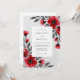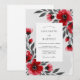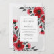 Capture a mood of dramatic sophistication with this striking design featuring vibrant red poppies and anemones. The painterly watercolor blossoms are set against a contrasting palette of deep charcoal and soft grey. This bold floral aesthetic is ideal for a romantic winter event.