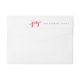 Make your envelopes stand out this holiday season with this festive red and white, wraparound label featuring a brushy pine-adorned, joy. Just add your return address on the right side of the label and a personalisation on the left side – either your family name or a holiday greeting.