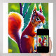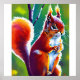 Red Sqirrel Sitting on The Branch in a Forest Poster