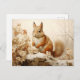 This is a very cute postcard that represents a red squirrel sitting in the snow in a beautiful winter setting. Next to the forest animal are some white flowers. The colours are vintage and add a touch of nostalgia and sweetness to the art.