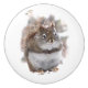 This ceramic door knob features an adorable little red squirrel with brown and white fur in the winter snow.