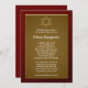 Burgundy red and gold Star of David Bar Mitzvah invitations.