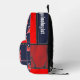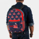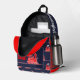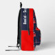 Bright red puffing steam train boys backpack. Personalise with your child's name, perfect for library or school. Currently reads Daniel and Daniel on boiler plate plus Daniel - Super Ferroequinologist along the top flap. Part of the kids graphic steam train range. Background colour can also be changed to your own colour choice currently in dark blue. A perfect gift for boys to take to school or as a gift to a train or railway transport fan. Original steam train graphic art and design by Sarah Trett exclusively for www.mylittleeden.com on zazzle.