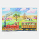 Red steam train naive folk art painting tea towel