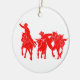 Red Steer Wrestler Ceramic Tree Decoration