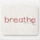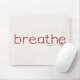 BREATHE text in red thread stitching with needle on neutral cream colored textured background.