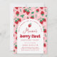 Red Strawberry Berry First Birthday Party Invitation
