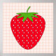 Nice bright red strawberry design, with a green top and a light pink gingham check pattern background.