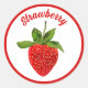 Bright red strawberry with leafy stem. Watercolour illustration. The ‘Strawberry’ word in text is editable to customise the sticker further.