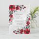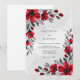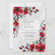 This design features a striking contrast of vivid scarlet red blossoms and deep charcoal grey foliage. Watercolor poppies and delicate buds create a dramatic and romantic atmosphere within the white space. Perfect for a bold seasonal ceremony, the artistic floral elements provide a sophisticated and modern aesthetic.