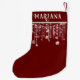 Red and white string lights sparkles Christmas stocking with a cute whimsical fun lights and name for a festive Holiday season.