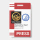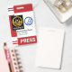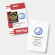Cover features a pair of red column stripes at the top and bottom of the badge. At the left wall of the badge is a special placard that holds a photo template. Here you can upload photos that measure 1,000 x 1,200 pix. That special column that holds your photo will help if your photo background is white. To the right side of the photo is an optional blue globe logo that you can use. The logo is based on a "broken world" design concept. This is followed by your prestigious name, job title and the employee number at the bottom. A caption "PRESS" can be found near the base at the lower right corner, change this to suit your service needs.