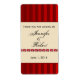 This beautiful and elegant design, called Red Stripe and Ivory Band with Rubies Wedding, has a beautiful red stripe background with a band in ivory and a row of rubies. Your text goes on the back. This set has invitations, save the date cards, response cards, thank you cards, table number tent cards, envelope seals, wine labels, binders, return address labels and many more day-of wedding stationery pieces, favours, and gifts available. Use the envelope seal stickers for any of your DIY gifts - these are available in both large and small sizes! All elements are printed on our high quality products, they do not include any real gold, jewels, embossing, or other textile elements. All designs are copyright Noteable Expressions, Inc. All rights reserved.
