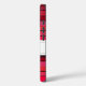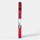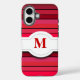 iPhone 16 Case with customisable monogram template and red stripes background; red and white bright retro design