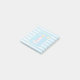 Cute little square sticky notes with a nautical theme. Designed with a blue striped pattern and a blue frame with a yellow border layered over top. A red striped lighthouse and a beach ball, and a smiling sun and flying seagull off in the distance positioned inside the frame. Semi-transparent overlay gives the design a soft faded look so you can easily write over top.