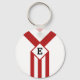 Red Stripes and Chevrons with Monogram on White Key Ring