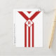 Stylish geometric pattern features bold red stripes on a white background. Three alternating red and white chevrons end at a white diamond outlined with red. It looks like a stylised medal hanging from a ribbon. The diamond contains a customisable monogram. Three red stripes extend from the opposite side of the diamond to the edge of the design. The outer thirds of the pattern are white.