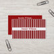 This pretty business card is perfect for any business or occupation. It features a red background with white stripes on the top and bottom of the front. A white stripe runs through the centre. The back is a solid red. All text is customisable.