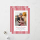 A classic flat holiday card featuring skinny red and white stripes, a "Happy Holidays' message in a traditional ink pen script with fully customizable text underneath, and a photo. The backer has the same striped pattern, but it can be easily swapped out for a photo if you prefer. Available in different colors and with different holiday messages in my store.