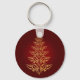 Get into the holiday spirit with this beautiful stylish gold tree key chain with a red background.