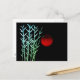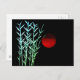 Bamboo trees and red sun in black zen circle hand-drawn with ink in traditional Japanese painting