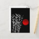 Bamboo trees and red sun in black zen circle hand-drawn with ink in traditional Japanese painting