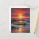 Red Sunset Ocean Seascape Painting Artwork Holiday Postcard