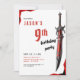 Red and White Boy Sword Warrior Birthday Party Invitation.