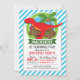 Red T-Rex Dinosaur; Blue & White Stripes Invitation