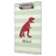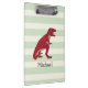 Red T-Rex on Pastel Green Stripes Clipboard